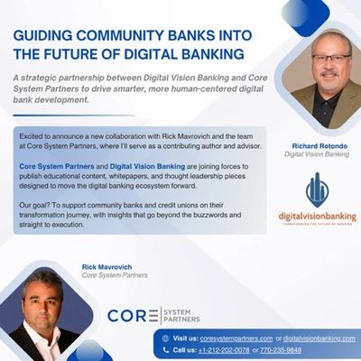 DIGITAL VISION BANKING Consulting, is excited to announce a new collaboration with Rick Mavrovich and the team at CORE SYSTEM PARTNERS, where I'll serve as a contributing author and advisor.